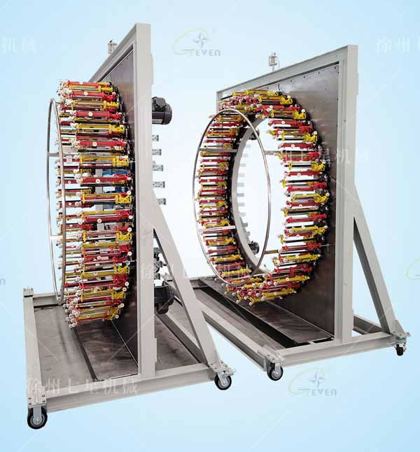該系列編織機主要用于各種較大規(guī)格繩帶(工具繩、游艇用繩、索具繩等)、電線電纜屏蔽層、高壓膠管、大規(guī)格玻纖管等的編織。
